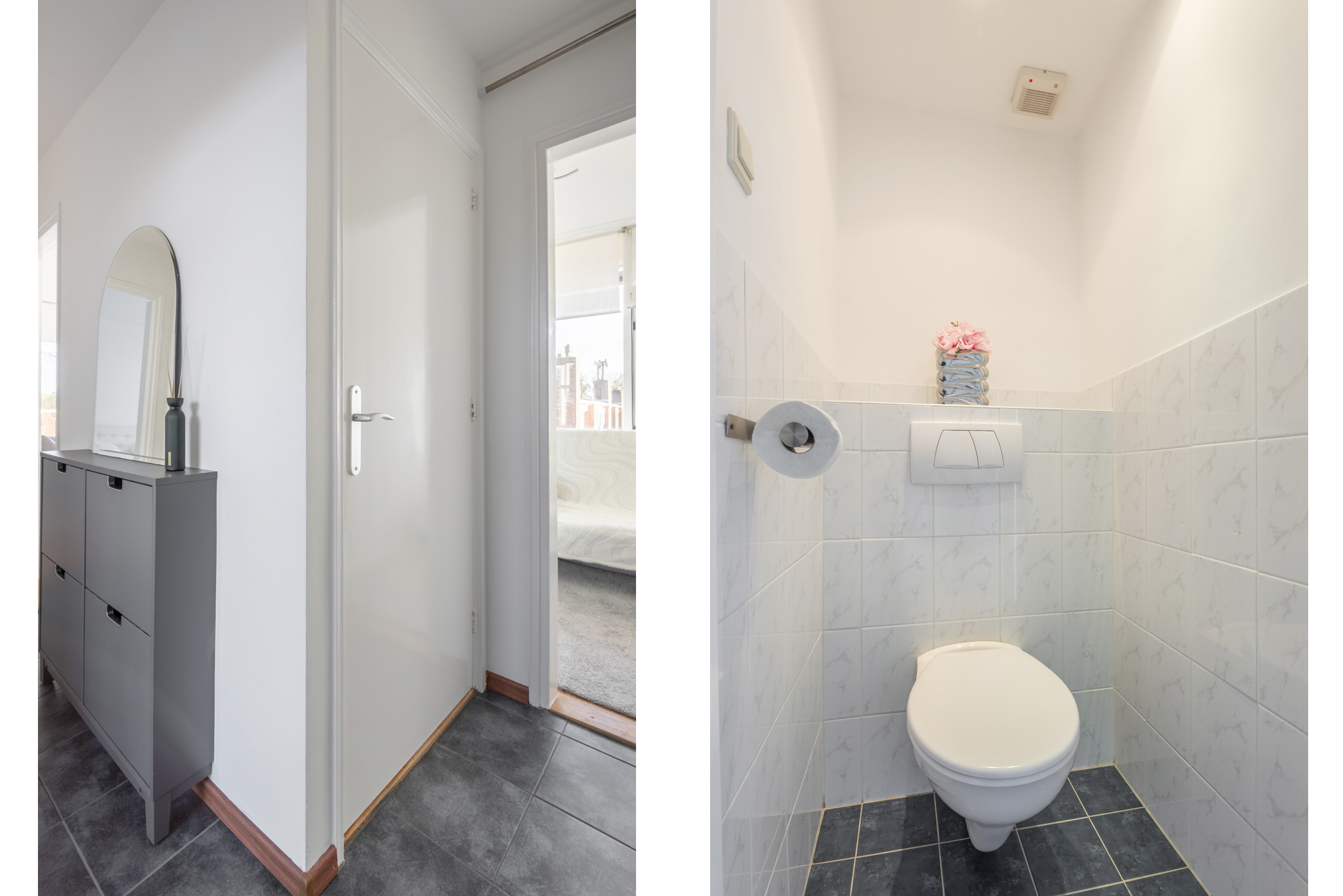 Het appartement is praktisch ingedeeld: entree, hal met intercominstallatie, toilet en meterkast. Vanuit de hal heeft u aan de voorzijde van de woning toegang tot de keuken, toilet, de badkamer en een grote slaapkamer.