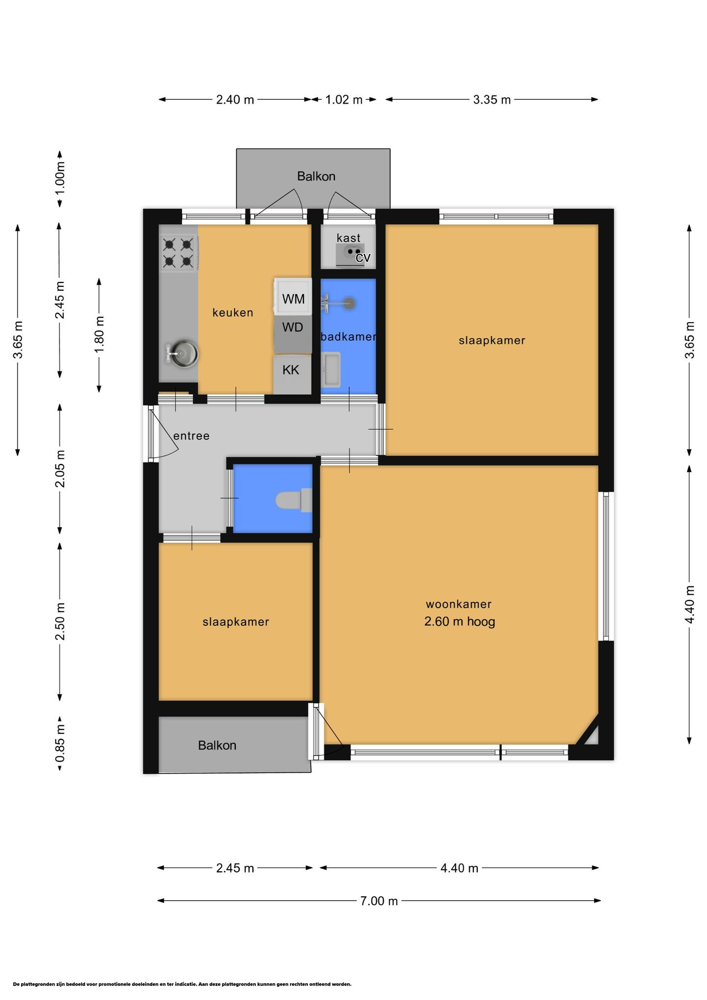 Vanuit de keuken toegang tot het balkon op het noordwesten welke via een separate deur toegang geeft tot de stookruimte met Atag combi cv-ketel (2010). Aan de achterzijde is de slaap/werkkamer en de riante lichte woonkamer. Vanuit de woonkamer is er door de 2 grote ramen een prachtig uitzicht over de wijk en het gemeenschappelijke plantsoen. De woonkamer geeft ook toegang tot het tweede balkon (zuiden).